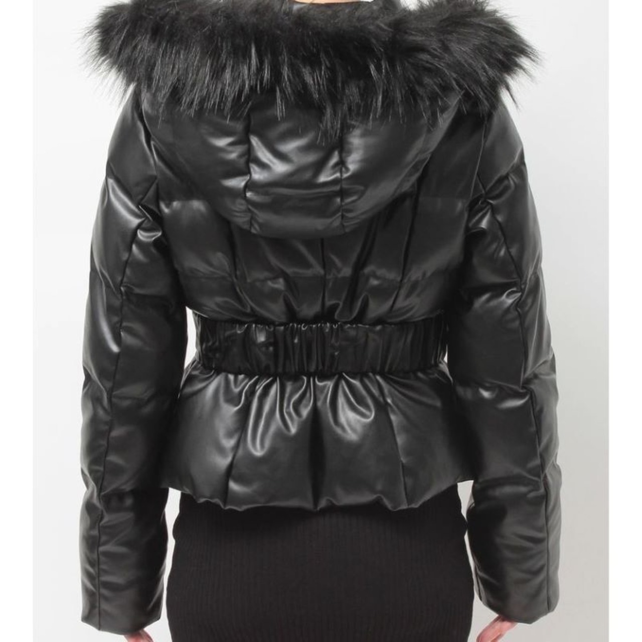 オリジナルロゴをウエストベルトに使用したフェイクレザーショートダウンコートです。
