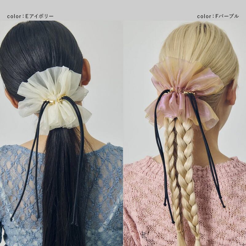・簡単にこなれたヘアスタイルが完成◎シアー生地のボリューミーなシュシュに、ドローストリングがアクセントになったデザイン。