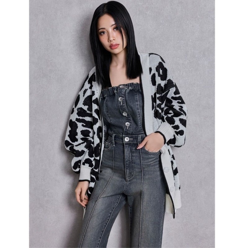 新作 gyda レディース 長袖 カーデ フリーサイズ ゆったり ラメ オフホワイト グレー ブラック ベージュ ミドル丈 レオパード柄 ルーズ 柄カーデ 春ニット セクシー カジュアル シンプル GYDA ニットカーデ gyda トップス ジェイダ トップス ジェイダ ニットカーデ 女性 定番 春