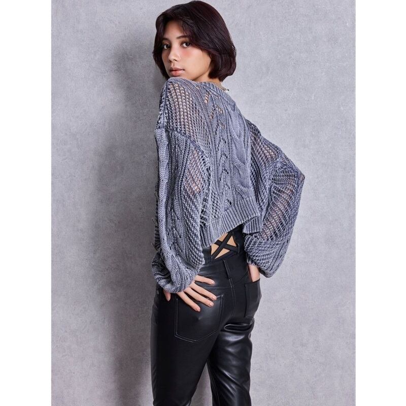 前後着用可能で、カーディガンとしても使用できる、大人気のブリーチニットトップスです。