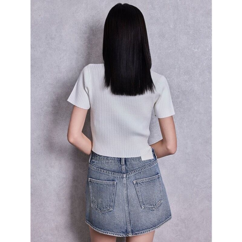 スキッパー衿なのでデコルテ見せですっきりとした印象に◎