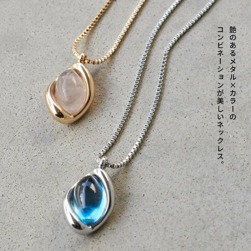 ・程よいボリューム感で首元のアクセントに艶のあるメタル×カラーのコンビネーションが美しいネックレス。