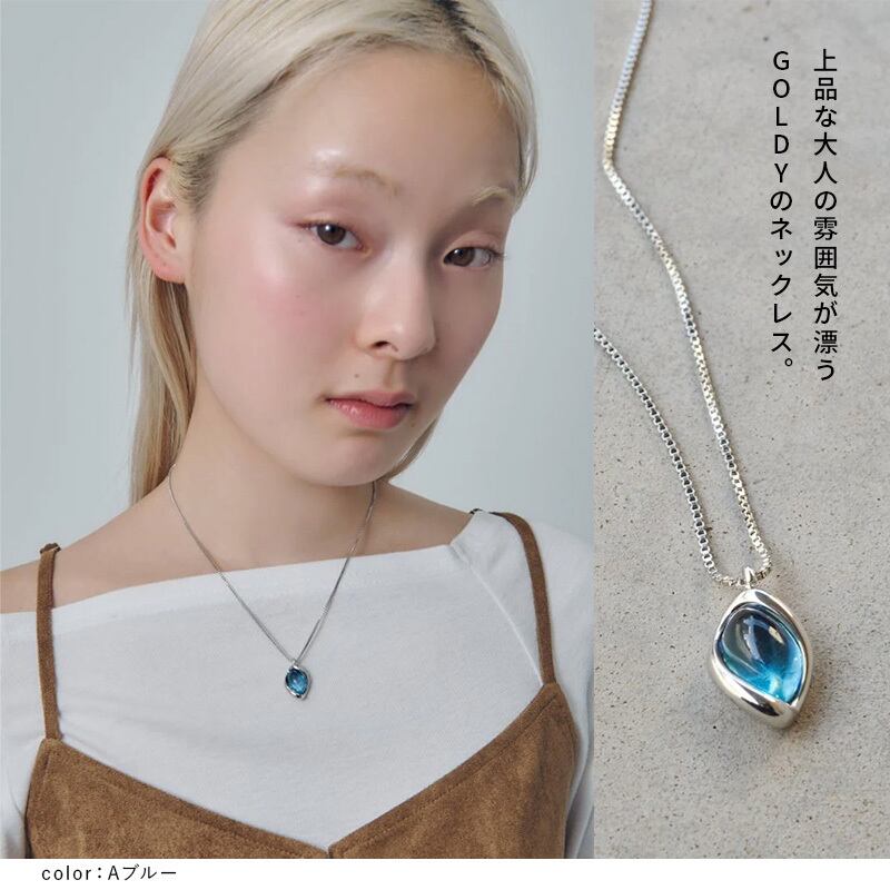 goldy アクセサリー レディース チェーンネックレス ペンダント ブルー グリーン レッド ベージュ goldy ネックレス かわいい ゴールディ ネックレス ゴールディ アクセサリー 大人 カジュアル おしゃれ 女性 プチプラ ギフト プレゼント 記念日 誕生日 ラッピング シンプル 金属 結婚式 パーティ 調整可能 カラーストーン