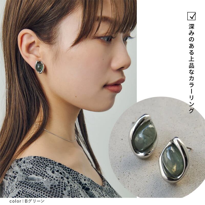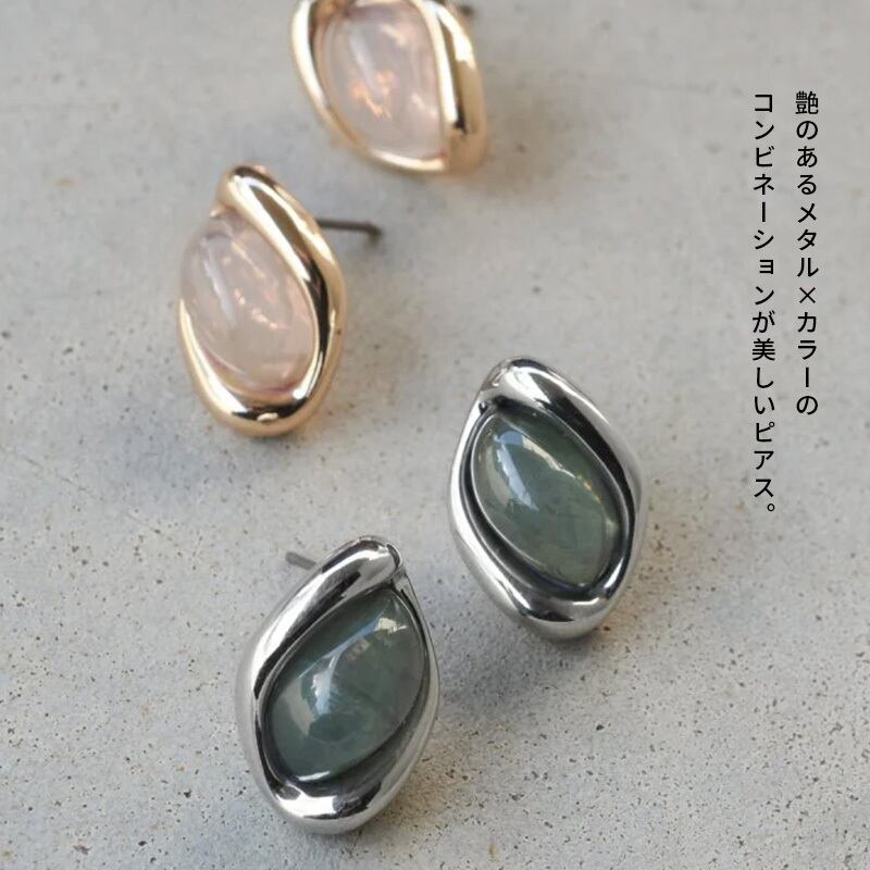 ・程よいボリューム感で耳元のアクセントに艶のあるメタル×カラーのコンビネーションが美しいピアス。