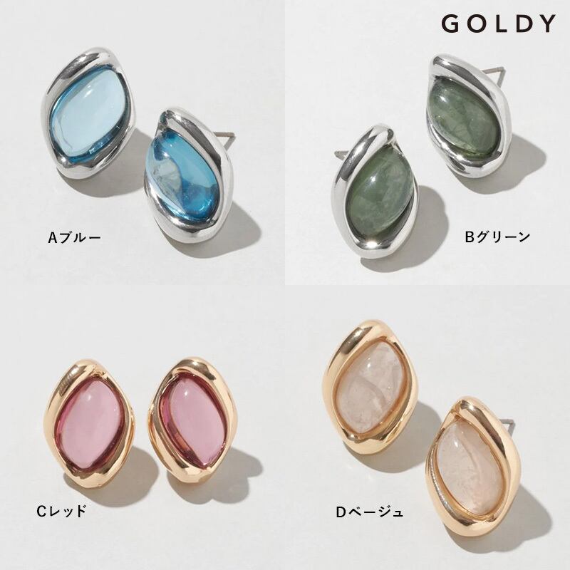 goldy アクセサリー レディース 女性 プチプラ ギフト プレゼント 記念日 誕生日 ラッピング シルバー ブルー グリーン レッド ベージュ 大人カジュアル シンプル 金属 結婚式 パーティ goldy ピアス ゴールディ ピアス 耳飾り メタル 卒業式 入学式 両耳用 かわいい カラーストーンピアス チタンポスト アレルギー対応
