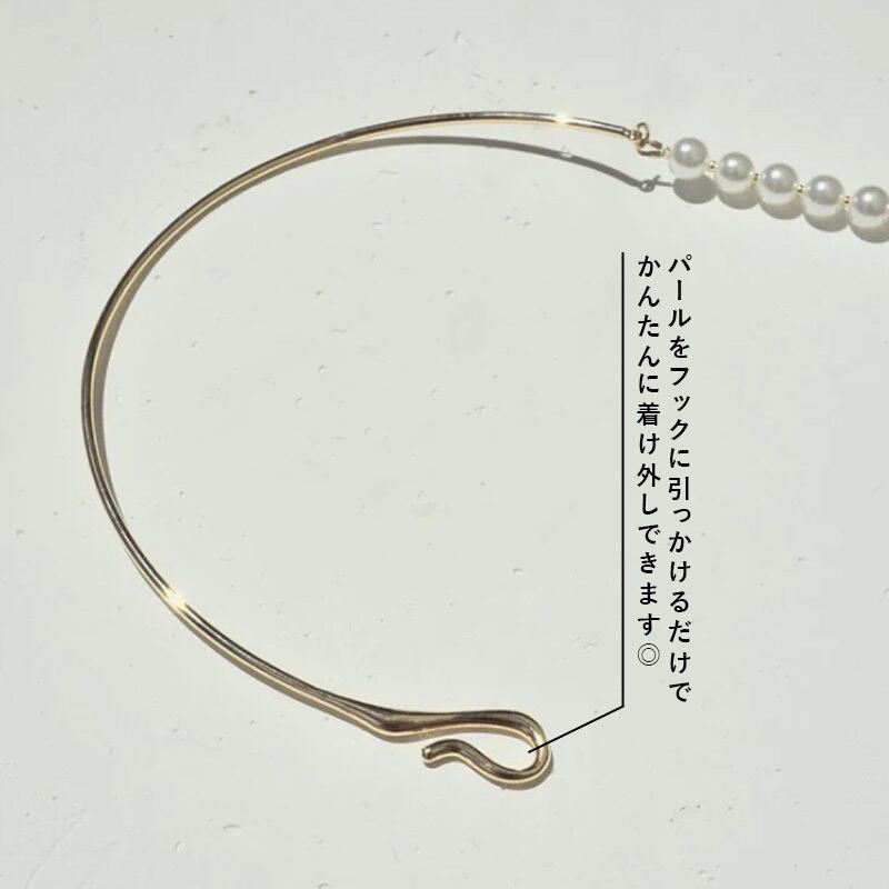 そのネックカフとパールをつなげた、アシンメトリーなコンビネーションデザインは、