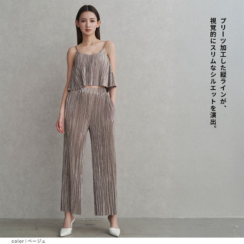 コーデ:サテンプリーツビスチェとSETUP着用可能です。